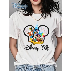 Camiseta Oficial Disney Minnie Mouse Feminina - Algodão Macio com Laço Vermelho e Estampa de Cogumelo - Roupa Leve para Festas, Presente de Aniversário, Moda Casual Verão, Tecido Respirável, Merchandise Oficial da Disney para Adultos