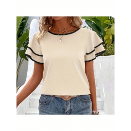 Camisola de manga curta de duas camadas europeia e americana de primavera e verão, com folha de lótus e gola redonda, ideal para férias e proteção contra o vento.