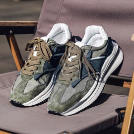 Bestseller Sapatos Retro Masculinos - Tênis Respiráveis de Sola Grossa com Aumento de Altura, Solado Antiderrapante & Design Leve para Esportes Casuais e Vestuário Casual - Tamanhos Grandes Disponíveis em Cores Neutras, Calçados Vintage, Fechamento com Ca