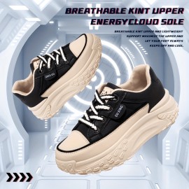 Tênis esportivos femininos - Tênis de bico redondo com suporte para arco, sola antiderrapante e plataforma - Sapato de trabalho casual