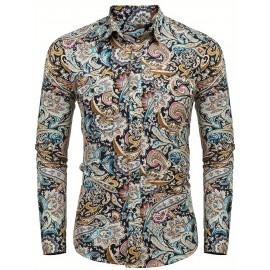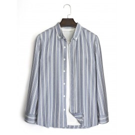 Camisa Slim Fit com Dupla Listra para Homens, Camisa de Lapela com Botões e Manga Longa, Roupa de Escritório Versátil