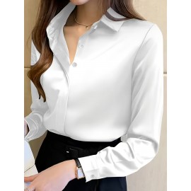 Camisa Feminina Retro Francesa de Manga Longa - Blusa Branca com Botões e Gola Pontuda, Top Clássico Elegante para Escritório e Casual Primavera/Outono, Tecido Não Elástico, Estilo Vintage