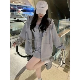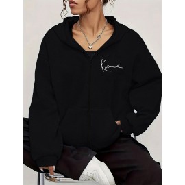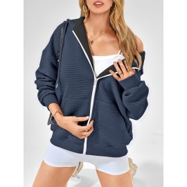 Jaqueta Atlética Feminina Preta com Capuz e Manga Comprida com Zíper e Bolsos - Mistura de Poliéster Elástico, Design com Zíper Completo, Roupa Esportiva Confortável para Vestuário Casual, Jaqueta de Treino