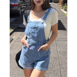 Blusas de ganga de manga comprida com gola virada de cor sólida para mulheres, estilo casual e solto para a primavera.