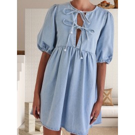 Vestido de Ganga Sem Mangas para Mulheres com Decote em V e Recorte na Frente, Design A-Linha para Praia e Festa de Verão, Vestido Casual Azul Claro