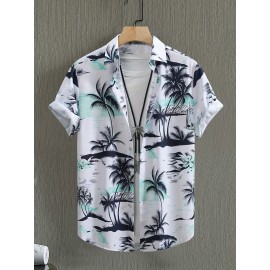 Camisa de manga curta com padrão geométrico vintage para homem, com estampa de verão casual leve e respirável para a praia, com impressão estrangeira.