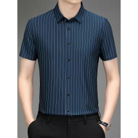 Camisa de manga curta para homem, ideal para o verão, com bolsos e conforto para a pele.