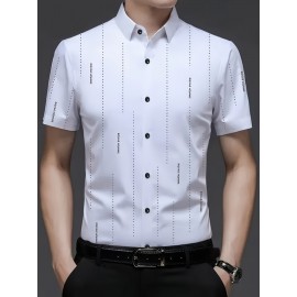 Camisa Casual Masculina para Negócios - Manga Curta Leve de Verão com Gola Clássica, Ajuste Regular e Cor Sólida, Tecido Durável Lavável à Máquina para Escritório & Uso Formal, Roupa Versátil, Abotoadura, Material Não Transparente