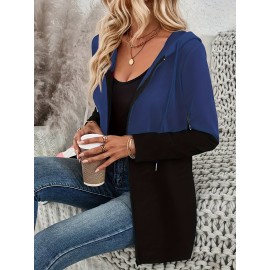 Mujeres Casual Suelto Ajuste Cierre de Cremallera - Longitud Media, Forro de Fleece, Cálido, Color Sólido, Versátil para Todas las Estaciones, Moda de Calle|Ajuste Relajado de la Sudadera|Jacke con Cremallera