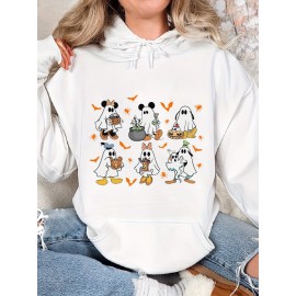 Mujeres Cozy -Blenda Hoodie com estampado de gato fofo - Pulôver casual de manga comprida para outono e inverno, lavável à máquina, 250g