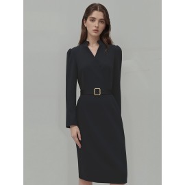 Vestido com decote quadrado na frente, elegante vestido de manga longa para primavera e outono, roupas femininas